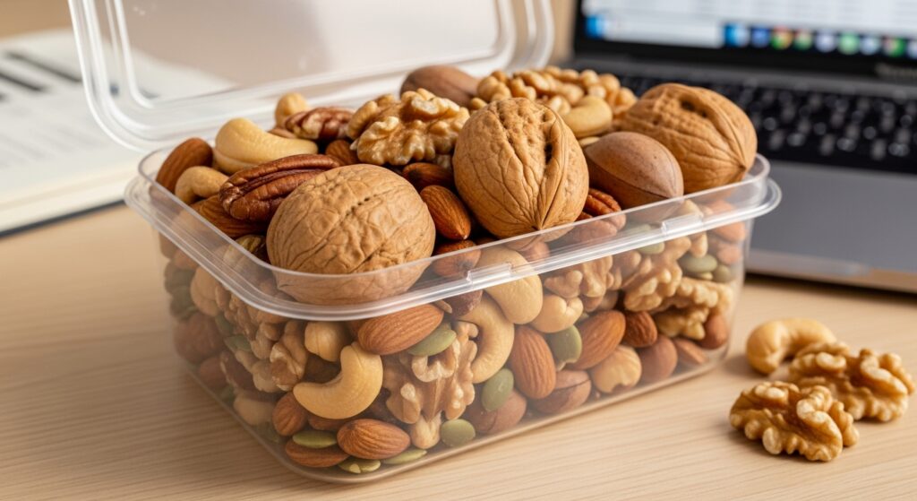 👉 Dica: leve porções pequenas (cerca de 30 g) em potinhos individuais. Assim, evita exageros e mantém o equilíbrio.