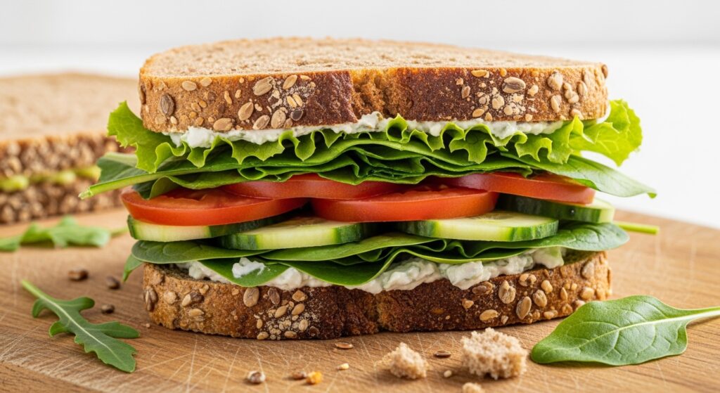 Uma opção leve, nutritiva e que sustenta bem até a próxima refeição, monte com pão integral, peito de peru, queijo branco e folhas verdes, assim, você garante proteínas, fibras e sabor tudo num só lanche.