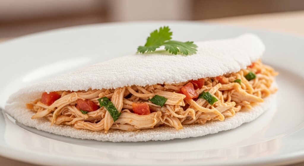 👉 Recheios saudáveis: frango desfiado, queijo branco, ovo mexido ou atum com cenoura ralada, por isso, é uma das opções preferidas de quem busca equilíbrio entre sabor e nutrição.